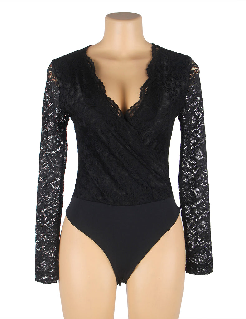 Farawlaya Brushed Lace Long Sleeve Bodysuit