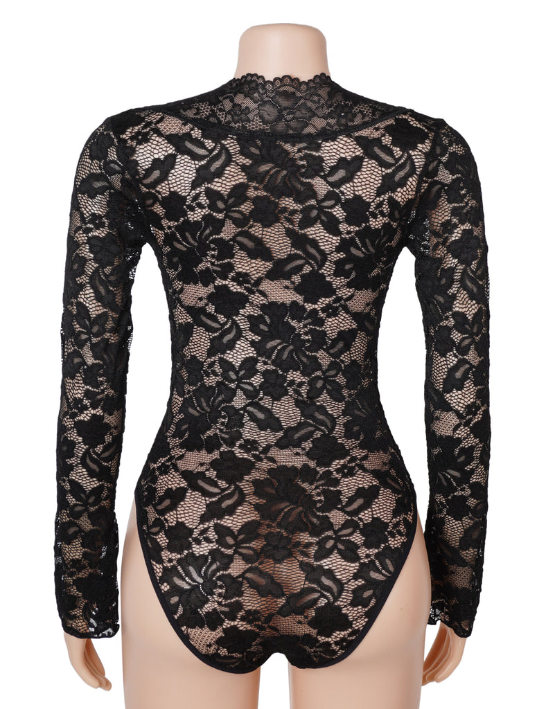 Lace V-neck Long Sleeves Crotchless Bodysuit Egypt