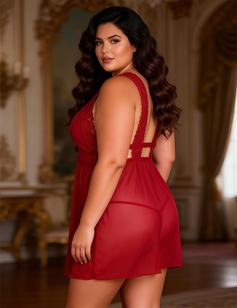• Indulge in luxury with our Plus Size Egypt Deep V-neck Mesh Sexy Babydoll from Farawlaya. Featuring a seductive deep V-neck and delicate mesh fabric, this babydoll will make you feel confident and alluring. Unlock your inner goddess and ignite your passion with this exclusive piece.