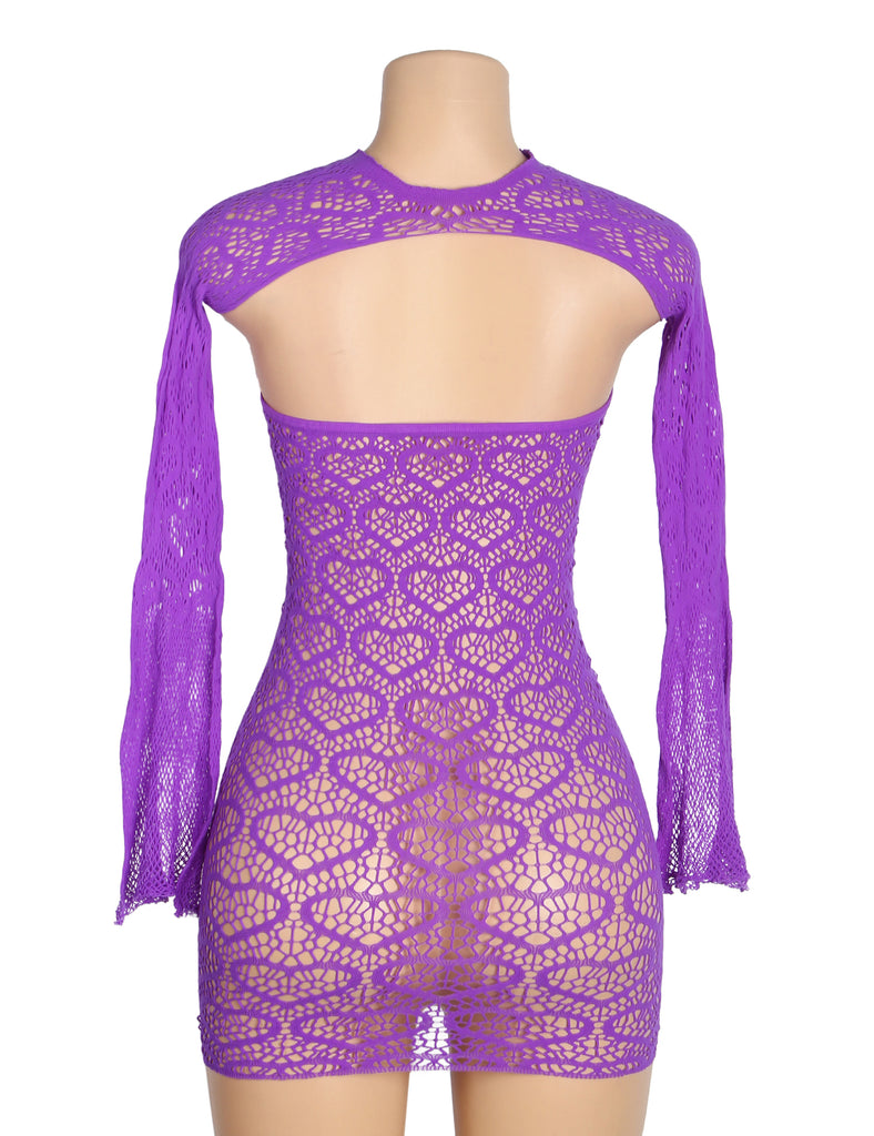 Purple Sexy Heart Shaped Long Sleeves One Piece Dress
