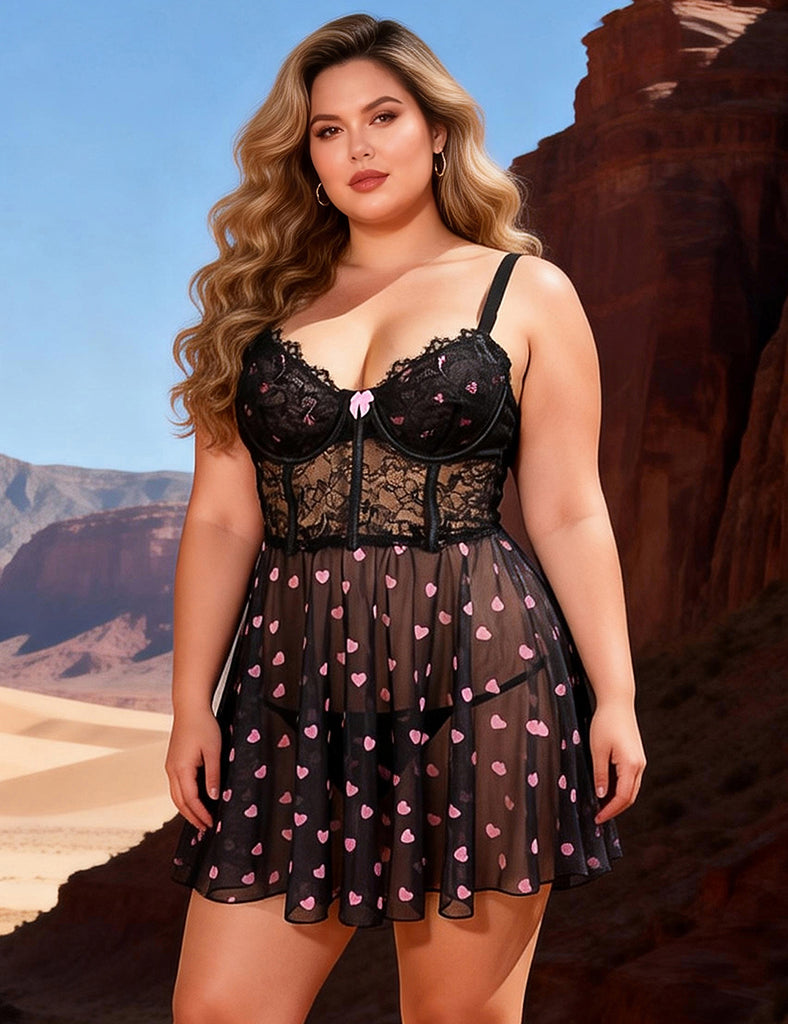 Sexy Egypt Heart Printed Lace Mesh Push Up Nightdress