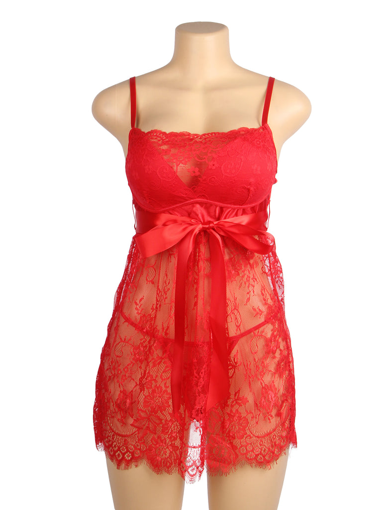 White Eyelash Lace Sexy Push Up Suspenders Nightdress