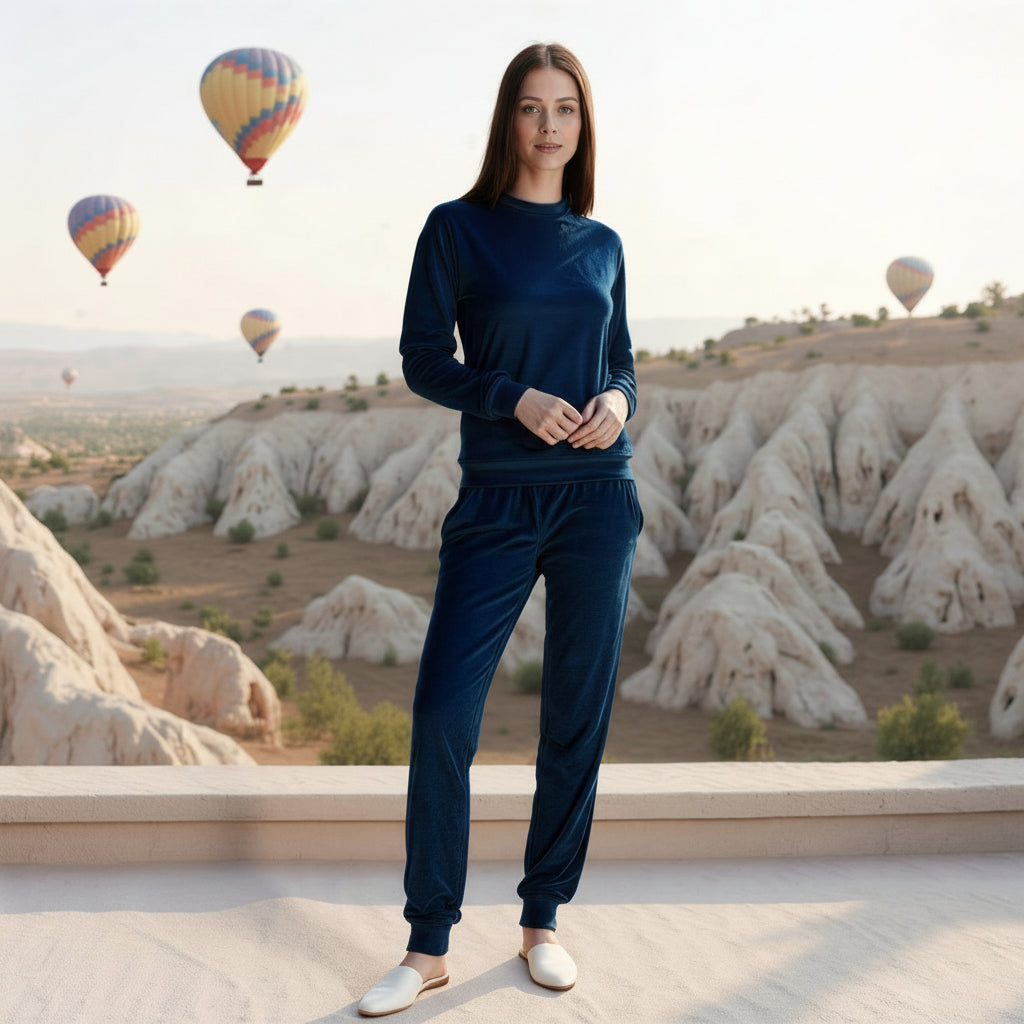 Indulge in the luxurious comfort of our Women's Velvet Pajamas, crafted from sumptuous velvet fabric that caresses your skin with every wear. Designed for those who refuse to compromise on elegance, these pajamas combine refined sophistication with everyday wearability. The soft, plush texture provides exceptional warmth while maintaining a graceful silhouette that transitions seamlessly from bedroom to casual lounging. Perfect for unwinding in style, these pajamas elevate your nighttime routine into a moment of pure indulgence. From Farawlaya, where quality meets timeless elegance.